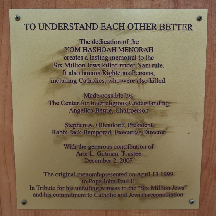 The present pandemic has seriously effected our programmes this year, but has far from stopped works in the house. As part of these works over the summer, we have transferred the Yom Hashoah Menorah, that had been presented to Cardinal Carlo Maria Martini, from our Museum to the entrance of our classroom, named after him, and where it may be better appreciated by our students.