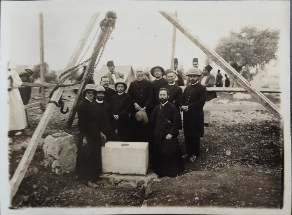 The foundation stone for building of the Pontifical Biblical Institute in Jerusalem was laid one hundred years ago, on 18 October 1925. While the project itself started in 1913 with the first caravan, the Institute did not yet a permenant home yet. The purchase of the land was finally completed on October 5, and the building project started in earnest. On 18 October 1925, Feast of St Luke at 16:00, the foundation stone was blessed and laid by the Latin Patriarch Mgr. Barlassina, in the presence of the British Governor, the Consuls of France, Italy and Spain, the Custos of the Holy Land, the Prior of the Dominican Convent of Saint-Étienne, several other religious and members of the Catholic community. Fr Alexis Mallon SJ and the participants of the VIth carovana were present on behalf of the Pontifical Biblical Institute.